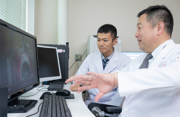 私は山形大学医学部附属病院で初期研修を行い、研修医の頃から眼科を選択し研修しておりました。眼はとても小さな器官ですが、多くの専門領域に分かれており、幅広い疾患知識が求められると思います。私自身まだまだ駆け出しではありますが、これまでも上級医の先生にご指導いただきながら、主治医として幅広く症例を経験させていただきました。他科では見ることのない診察・検査器具が多く、最初は慣れずに戸惑うことも多いですが、経験の中で着実に知識と技術を身に着けることができます。また、早い段階で、自分の力で一般外来をこなせるようになり、勉強したことをすぐに自身の診療に生かすことができます。わからないことがあっても、上級医の先生方が適宜相談にのり、サポートしてくださいます。興味のある方はぜひお気軽にお声がけください。